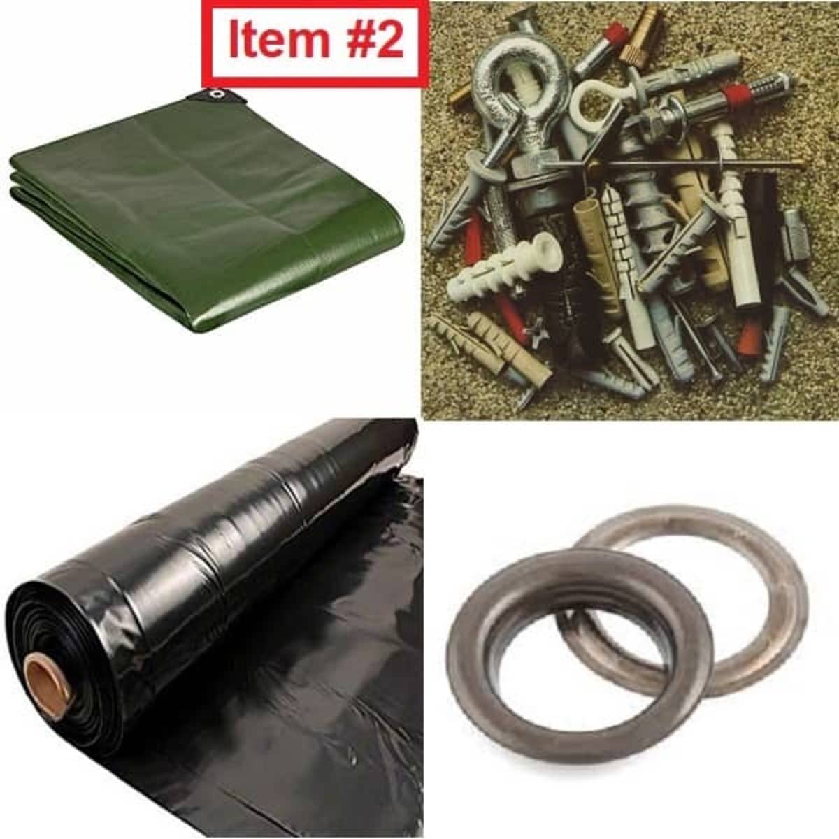Esencialmente son los elementos para la cobertura y protección de su pared, así como los de fijación de aquellos a ésta. De este modo serán diferentes para el caso de cobertura de pared simple con cubiertas o con estructuras. Y en el caso general habrán siempre fijadores como: chazos, tornillos, correas de amarre, ojales grafados, etc. De manera particular para el caso de fijaciones a estructuras como «CUADRO»: tubos de aluminio con su tornillería. Y de manera similar barras redondas de hierro con tornillos golosos para conexión al sistema «marcOCULTO».
