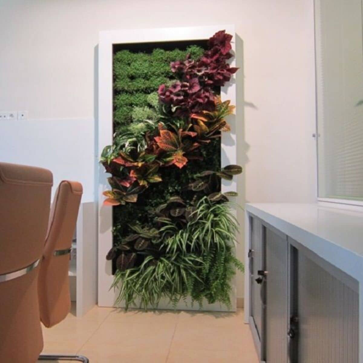 - Segundo, los paneles CUADRO CJV-32, como su nombre indica parecen pinturas artísticas en relieve. Pero además será un lienzo o jardín en cuadro tridimensional con las matas. Antes que nada destacan por una muy elegante estructura que aloja y oculta el riego interno con bomba y programador, bolsillos en paño. Además muy estéticos como jardines en la pared, en interiores de oficinas, salas de reuniones, alcobas, etc.